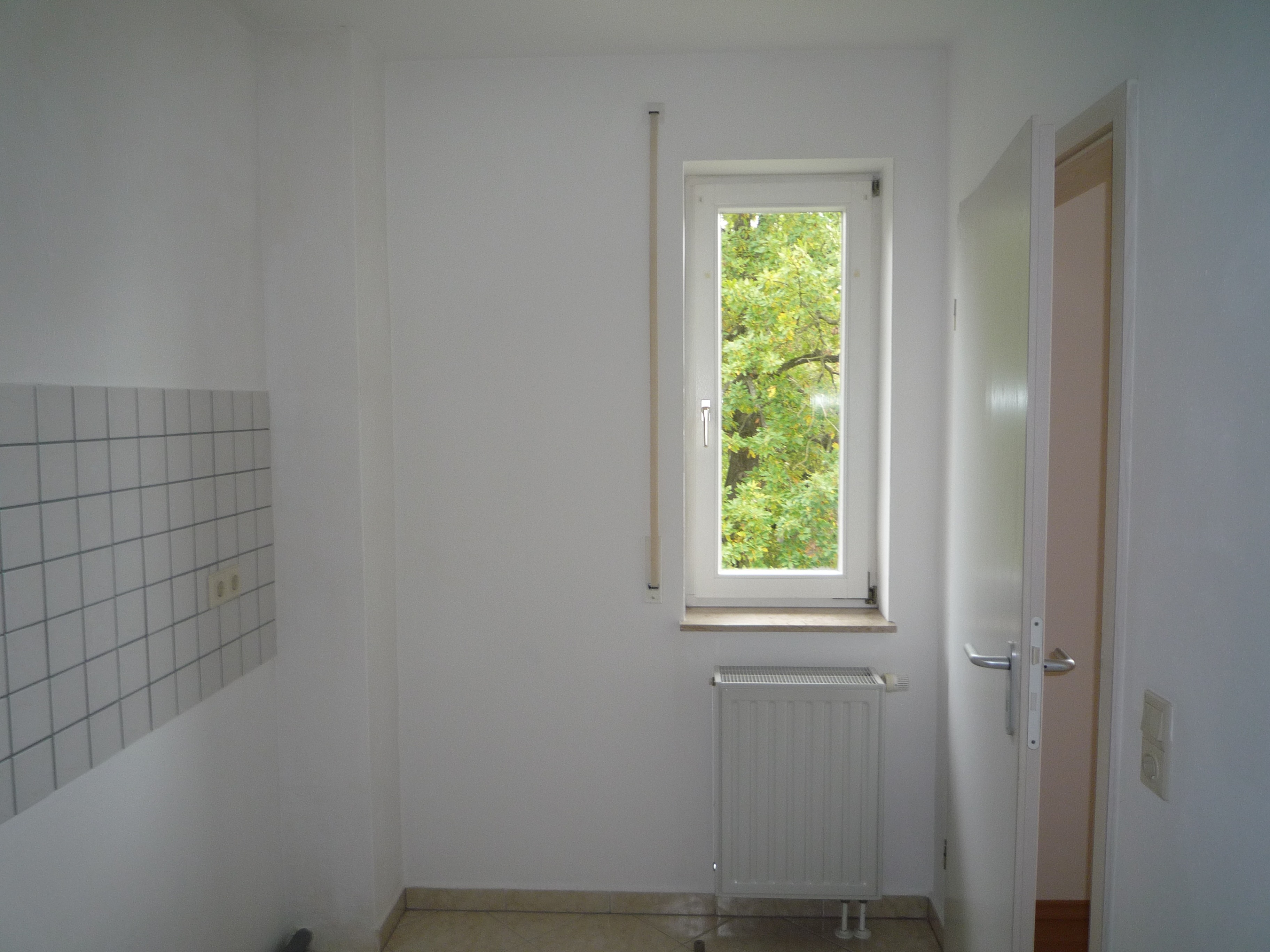 - Küche mit PVC-Belag und Fliesenspiegel